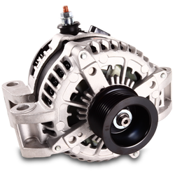 This outstanding large case elite series alternator features 6 phase Hairpin stator technology, twin rectifier plates, and 12 massive diodes for outstanding durability. In diesel applications, this unit can crank out as much as 180 amps at engine idle rpm, with 240+ amps at cruising speed. This unit can be installed with the stock length belt, and uses the same beefy internal components as it's 370 amp big brother, to provide excellent durability in abusive applications.