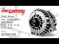 This 240 amp alternator for 1996-2004 GM trucks and SUV's cranks out tons of power at a great price. This unit features a solid copper positive rectifier plate, with (6) oversize 65 amp press fit diodes for great durability in daily driven applications. Oversize 8mm positive and ground studs make cabling upgrades a snap, while the included 1.75 inch diameter overdrive pulley ensures a solid 140+ amps at engine idle RPM! NOTE: This alternator will require a slightly shorter than stock length belt in most applications. Shorter belts can easily be purchased from your local autoparts store. This unit is not recommended for racing use above 5,500 engine RPM.