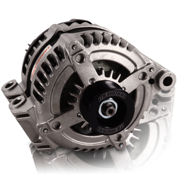 The S series of 6 phase alternators offers incredible output in a compact and durable package. Highly efficient, these units use less horsepower than conventional 3 phase alternators. 12 diodes, twin rectifier plates and outstanding airflow ensure long service life, even in severe conditions. These units are available for a broad range of domestic and import applications in 170, 240, or 320 amp configurations. The 240 amp model offers the best balance between peak output, and output at engine idle RPM.